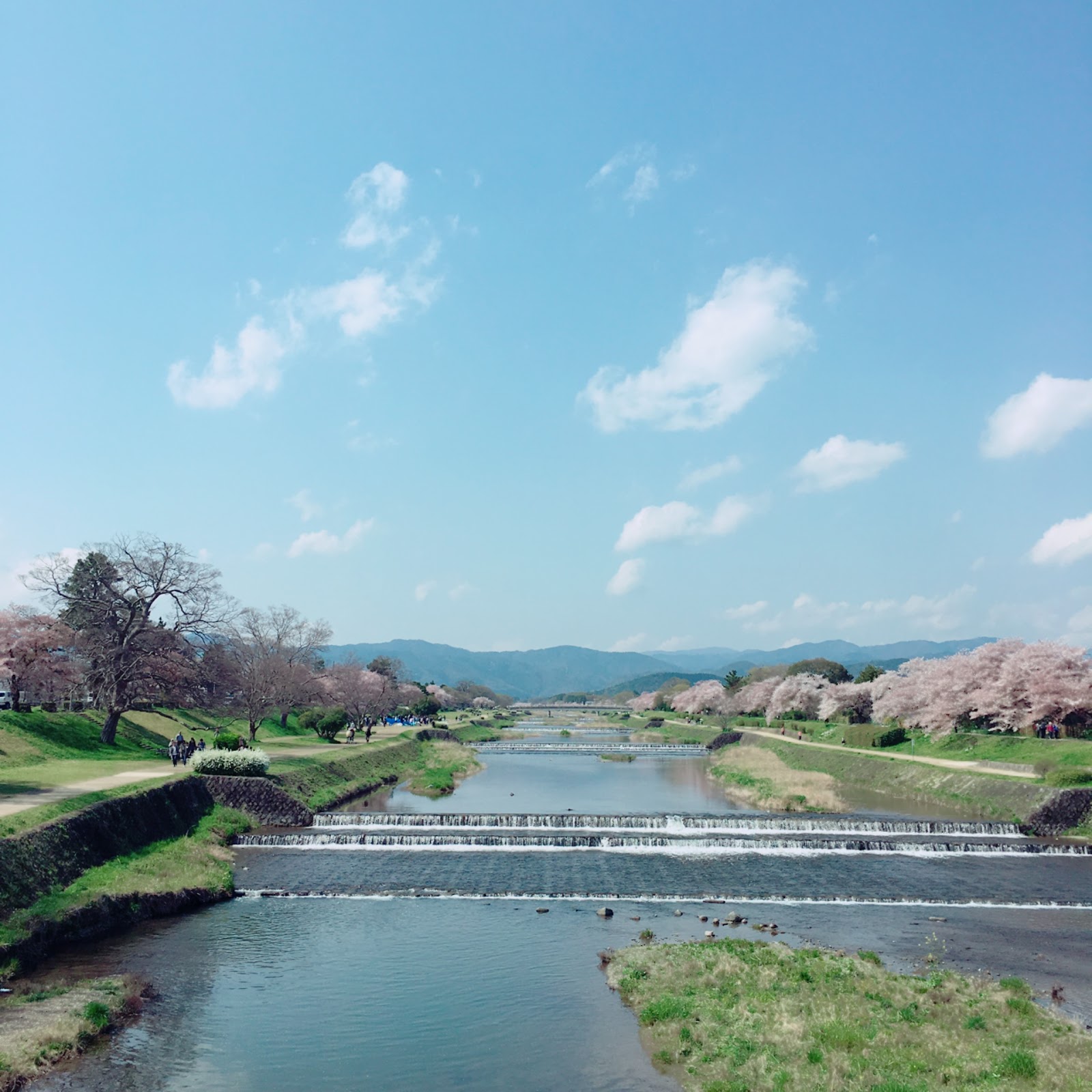 まだ桜も楽しめて、春の鴨川に集まる人もたくさん。いろんな人がいるねと川の流れや人の流れを見る。